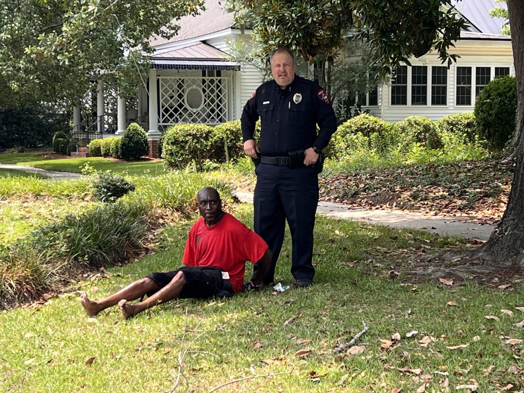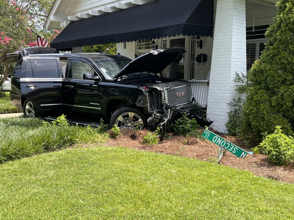 Just over an hour later, at 12:35pm, Sanders was reportedly operating the same SUV on N. Second Street near Caswell Street when he collided with a utility pole then a house. He reportedly jumped and ran from the accident scene. He was located a short time later by Smithfield Police and detained.