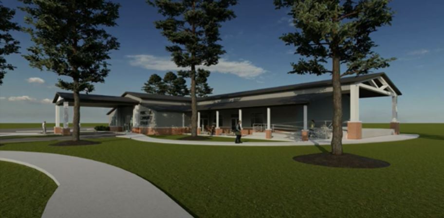 The proposed new $2 million Community Center could accommodate up to 170 people and would include a covered porch, covered pavilion, and outdoor amphitheatre. The property could also be used as a wedding venue, farmers market, conference and meetings rooms, and by Veterans.