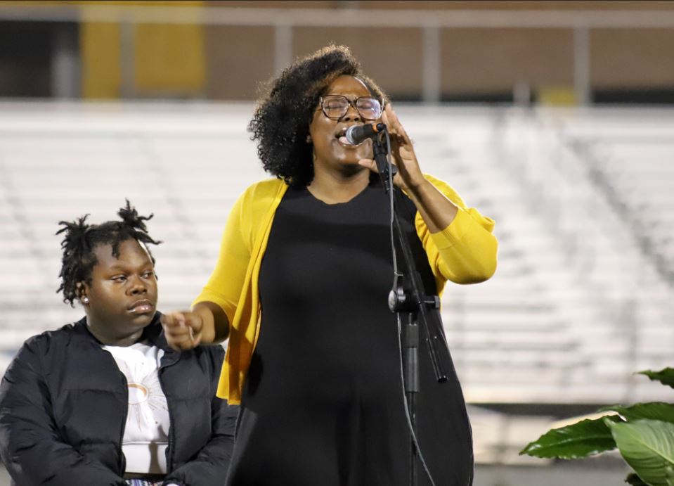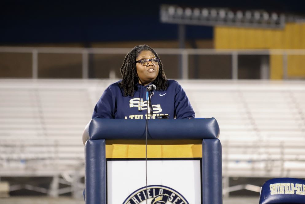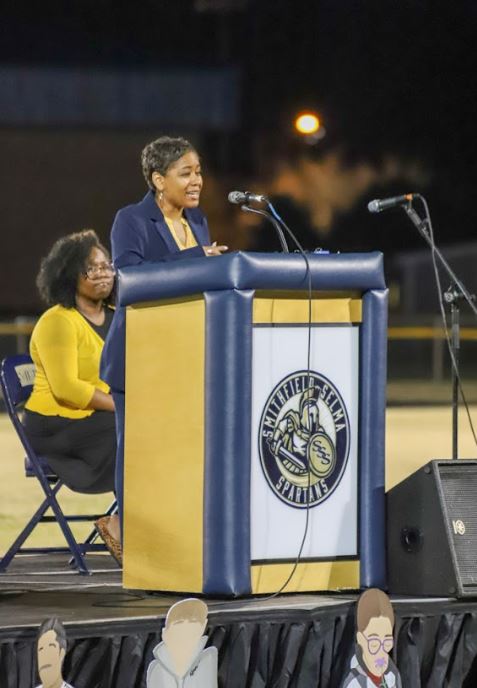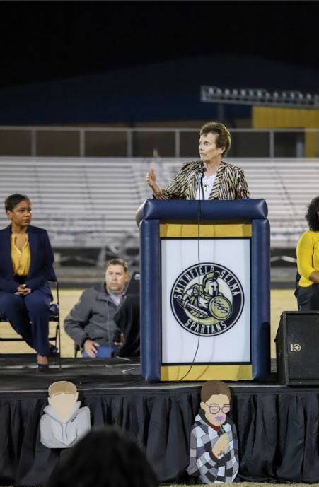 SSS High Principal Crystal Gregory and School Board Chair Lyn Andrews were among those to speak.