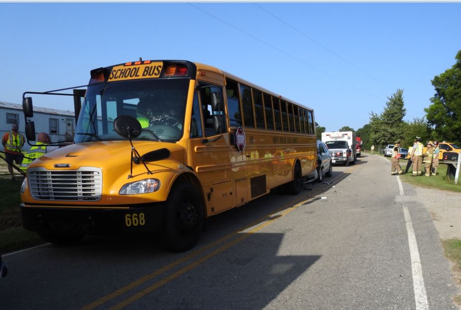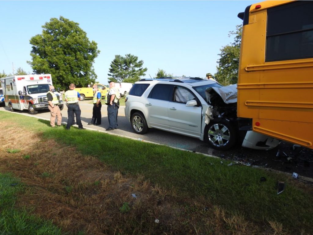 Bus 668, assigned to Thanksgiving Elementary School, had 14 students on board plus the driver. The bus had stopped in the 700 block of Barnes Lake Road to pick up a student when it was rear ended by a SUV.