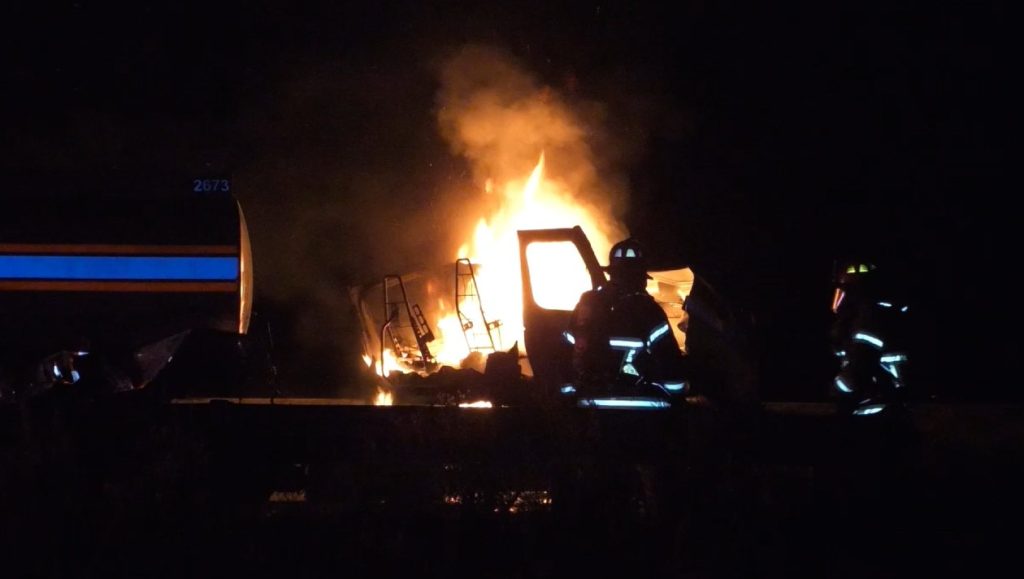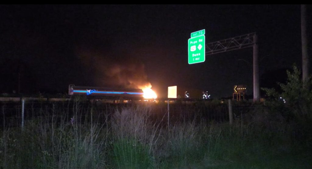 Shortly before 5:00am, a box truck, gasoline tanker, and pickup truck collided near the 71 mile marker.