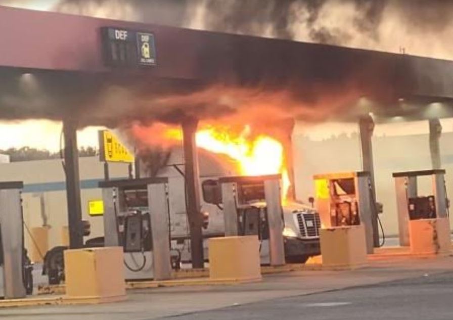 Before firefighters could arrive, flames engulfed the newer model semi truck and flames wrapped around the roof of the diesel fuel island at the popular Truck Stop Road truck stop near Kenly.