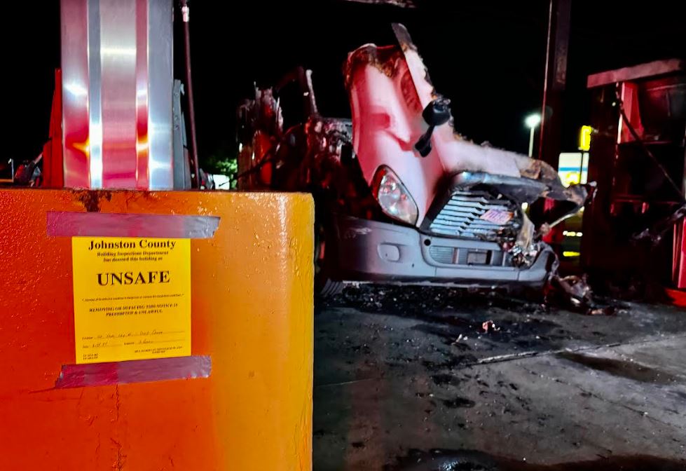 The Johnston County Building Inspector’s office condemned the damaged fuel island with its charred wiring and destroyed pumps.