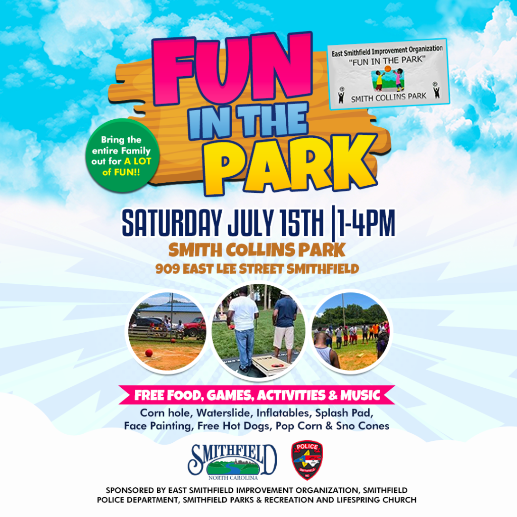 SMITHFIELD – Smith-Collins Park, located at 909 East Lee Street, will host Fun in the Park this Saturday, July 15th from 1:00-4:00 p.m.