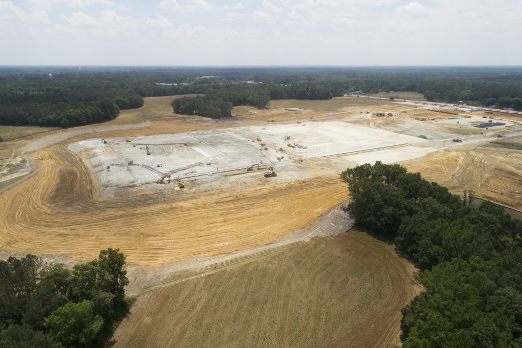 An aerial photo of the West Smithfield Industrial Park and construction of the Amazon warehouse.