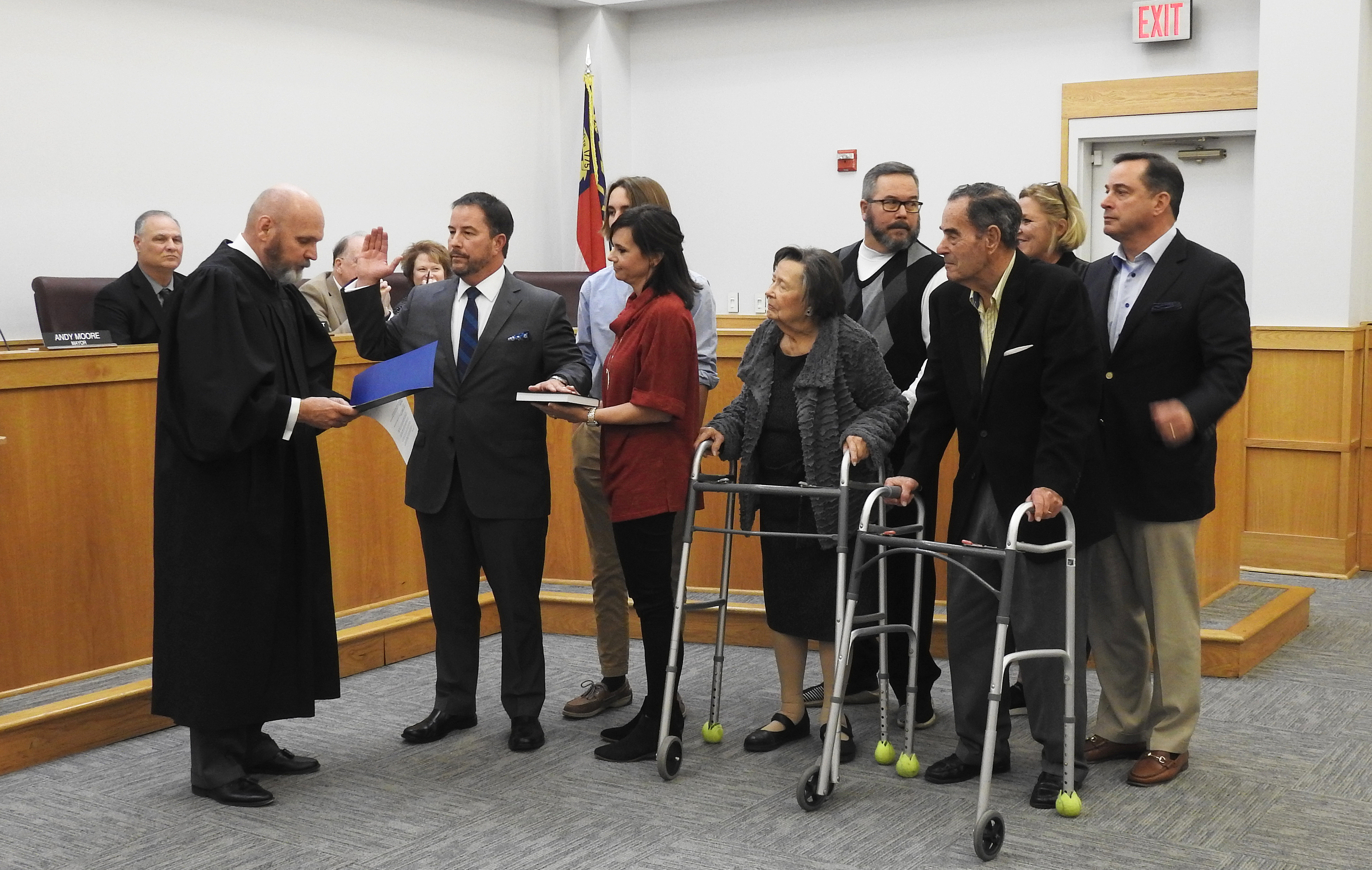 “Thanks to my family for the last 20 years who have put up with me and afforded me this opportunity,” Mayor Moore said after receiving his Oath. Mayor Moore, Dunn and Rabil were all re-elected to their respective positions. Wood won the seat vacated by Councilman Emery Ashley who did not seek re-election this year.
