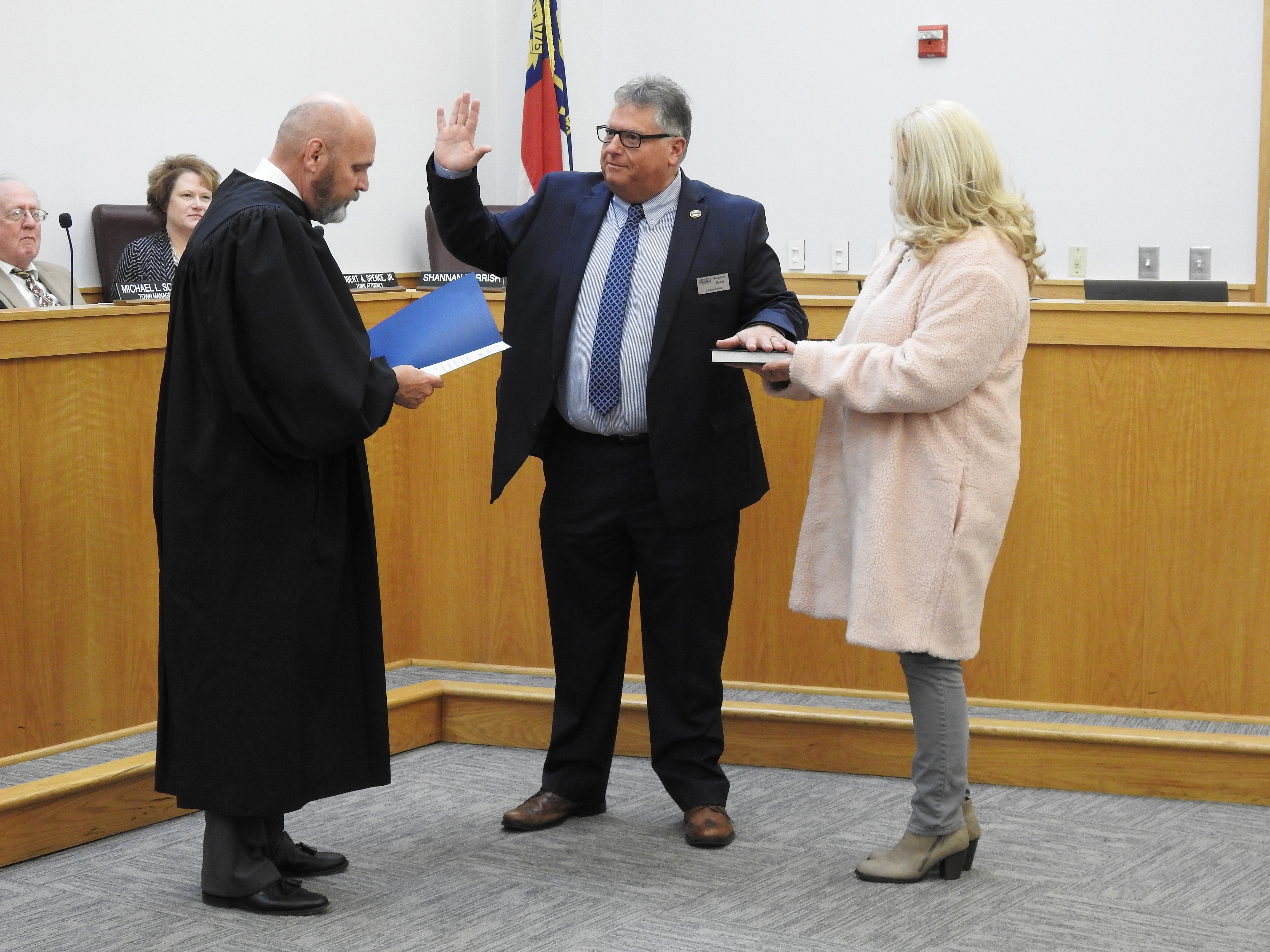 Chief Resident Superior Court Judge Tom Lock administered the Oaths to Mayor Moore, Councilman John A. Dunn, Councilman Steve Rabil, and Councilman Roger A. Wood.