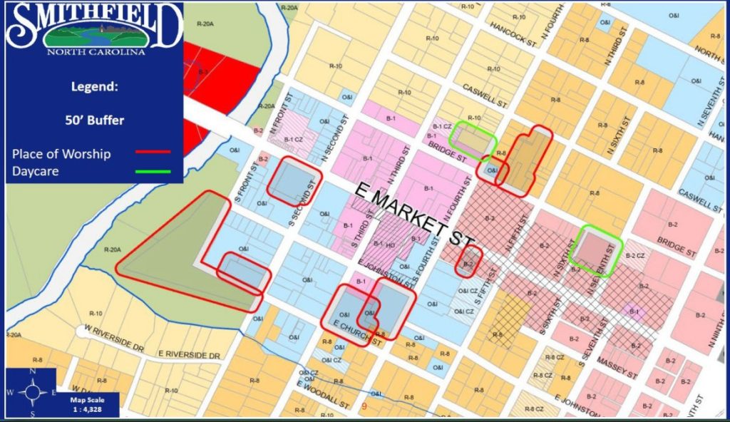 Town planning staff and the Planning Board recommended approval, saying the amendment aligns with the Town of Smithfield Comprehensive Growth Management Plan and its “Vibrant Downtown” goals. But the council’s vote did little to settle the broader debate. Even with the zoning change, the North Carolina ABC Commission retains final authority over alcohol permits, and must consider neighborhood impacts, traffic, parking, and proximity to churches and schools before issuing any license.