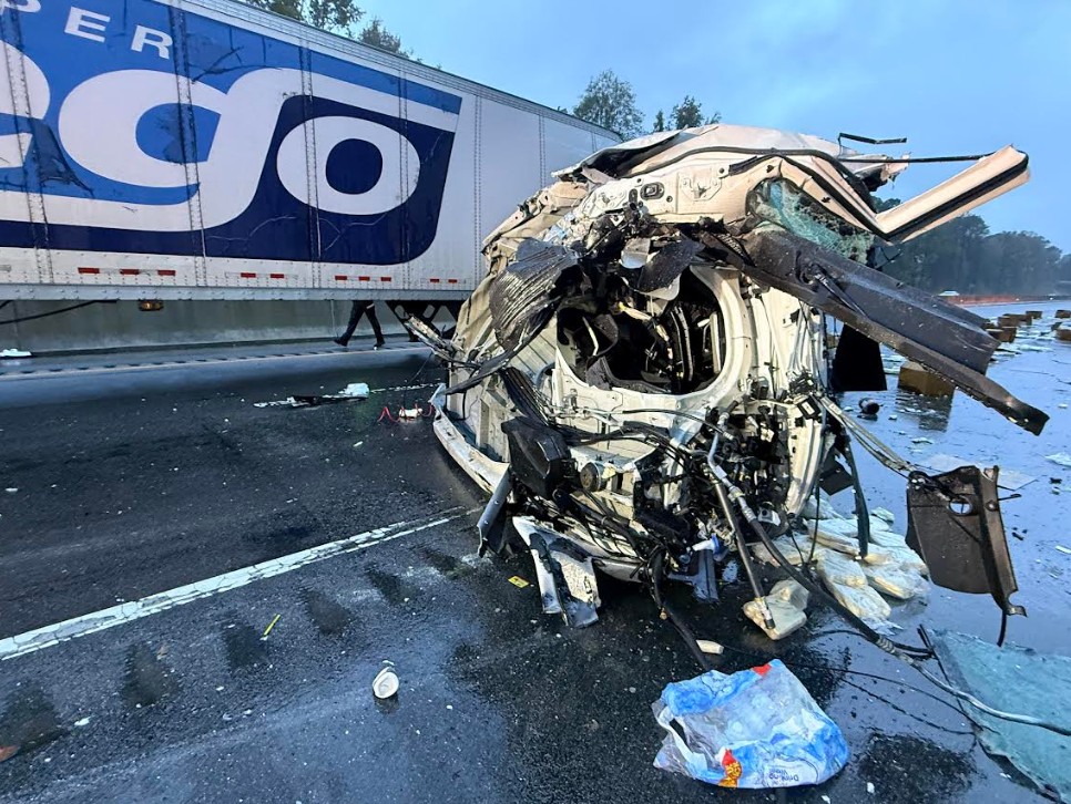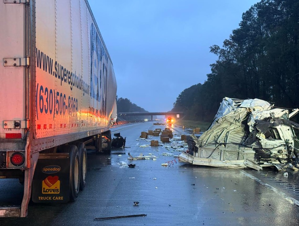 The collision occurred around 6:00 a.m. prompting authorities to close both southbound lanes while emergency crews cleared the wreckage. The highway reopened shortly before 10:00 a.m.
