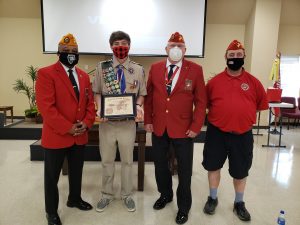 Spencer was also awarded the Eagle Scout Good Citizenship Award by Senior Vice-Commandant Robert Long (3rd from left), and the Marine Corps League Department of North Carolina Assistant Eagle Scout Coordinator Devell “Bull” Durham Jr. (left), and Marine Jimmie George (right) of the Johnston County Marine Corps League Carry-On Detachment #1236.