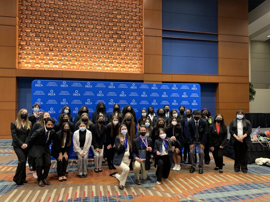 DECA is a career and technical organization that prepares young leaders and entrepreneurs in marketing, finance, hospitality and management. There are many categories that members can compete in, such as Principles of Business Management, Sports Marketing, Entrepreneurship, and Hospitality and Tourism Management.