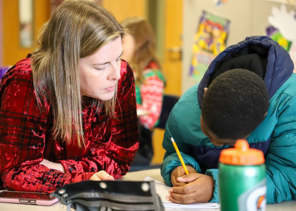 Johnston County has committed to providing the additional support needed to help each and every school achieve academic success and reach district goals. During the visit to Riverwood Elementary, central office employees were able to actively engage with a few of the students and help with proofing some of their work. Andrew Richardson is a 4th grade student in Ms. Jennifer Medlin’s classroom and he had the opportunity to have his work reviewed by Dr. Bracy. While doing so Mr. Richardson spoke very highly of the impact Ms. Medlin has had on his educational experience. “I like Ms. Medlin because she is unique in the different ways she helps us learn the lessons,†said Richardson.