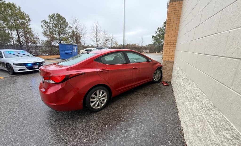 The crash caused minor damage to both the building and the vehicle. No injuries were reported.