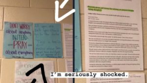 According to several emails received by JoCoReport, a teacher Brian VanDerlaske, allegedly placed his own message beside the Bible verse with an arrow pointing to the scripture stating, “If you are sick you should go to the doctor. This is terrible medical advice. Some people have died/gone to jail because of it.” Next to his comments VanDerlaske also posted a copy of an online news article entitled, “Parents given jail terms for relying on prayers to save dying daughter”.