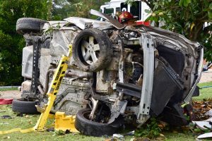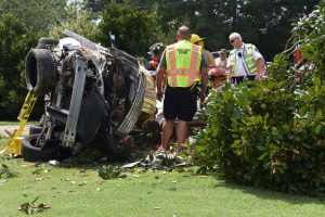 Trooper C.E. Summerlin estimated Barker was traveling 55mph in a 45mph zone at the time the Chevy ran off Loop Road. The vehicle was a total loss. Photos by John Payne