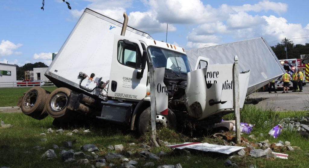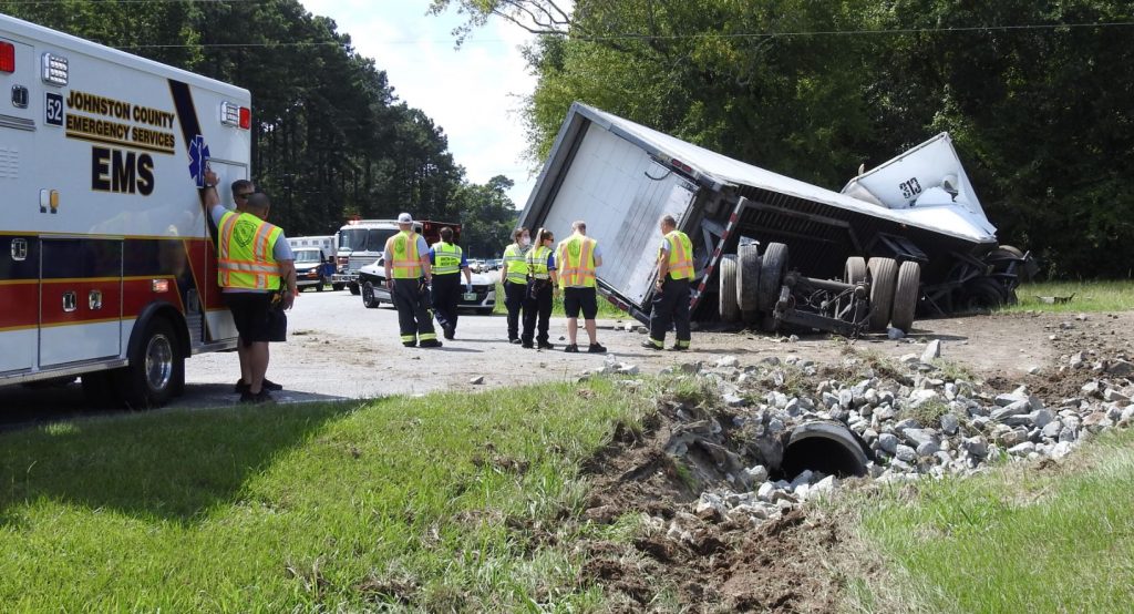 SMITHFIELD – A tractor trailer was involved in a single vehicle accident around 2:50 pm Wednesday on US Highway 70 Business East at Yelverton Grove Road.