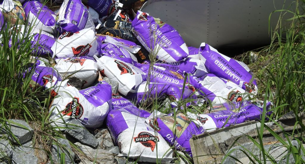 The truck had the name of Coker Feed Mill of Goldsboro on the door. It was hauling bird feed and animal feed products.