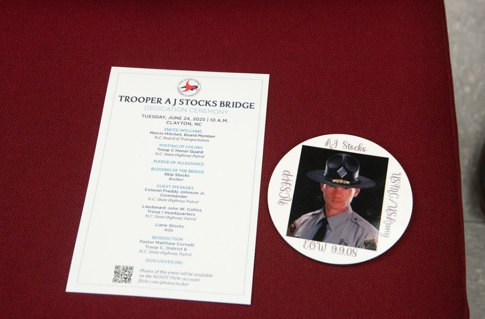 At the request of the State Highway Patrol, the NCDOT approved a resolution in November 2024 to dedicate the bridge after the fallen officer.