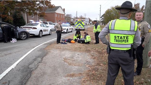 While traveling on Bethlehem Road at Poole Road, the fleeing suspect drove off the highway, ran through a red light, sideswiped a car, then struck the back of a marked patrol cruiser. The driver reportedly tried to run away on foot but was immediately caught.