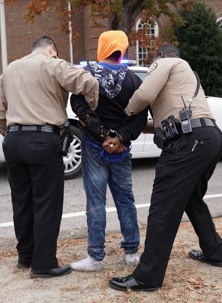 At 1:56pm Saturday, the Johnston County Sheriff’s Office received a report of suspicious activity in the parking lot. The caller said a gray Nissan car, operated by a man wearing an orange ski mask, had backed up to the front door. A female passenger reportedly got out of the car and told the driver to back up closer to the door.