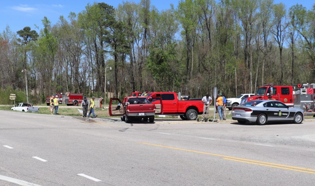 FOUR OAKS – Two drivers were injured when three pickup trucks collided Saturday at 2:05pm on US Highway 701 South at Strickland’s Crossroads Road.