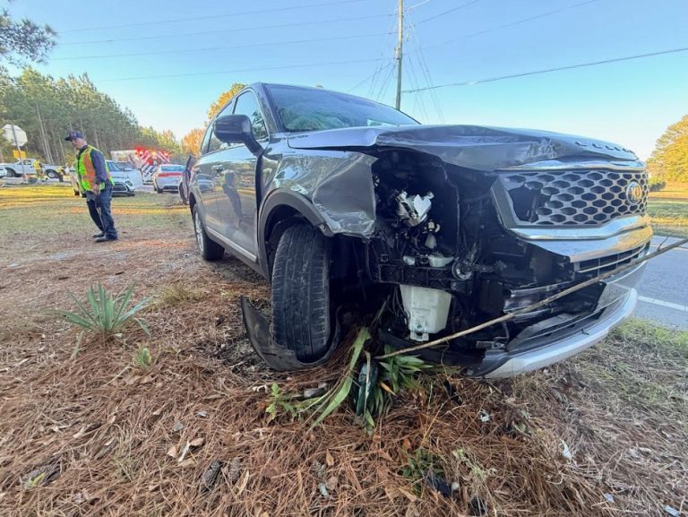 The cause of the collision remains under investigation. Unconfirmed reports indicate the deputy was traveling on Highway 210 towards Lillington and met a speeding car. The deputy turned around and activated his lights and siren and was attempting to catch up to the speeder when the patrol SUV collided with a black Ram pickup truck crossing Highway 210 on Ray Road. The deputy’s SUV struck the passenger’s door of the pickup. The truck then collided with a utility pole. The SUV came to rest in front of the truck.