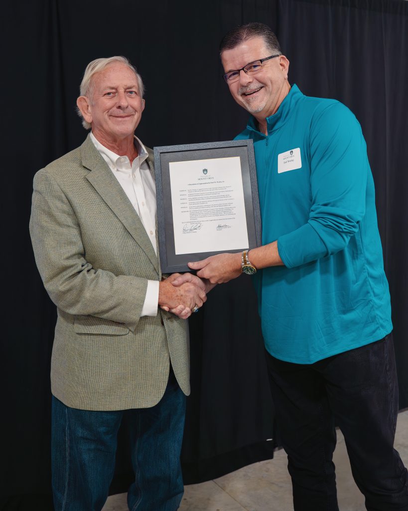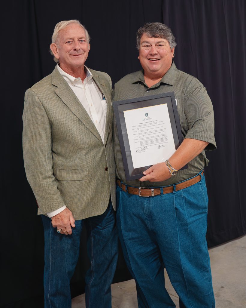 MOUNT OLIVE – Following its most recent Board of Trustees meeting, University of Mount Olive (UMO) President Dr. H. Edward Croom recognized three long-time trustees for their dedicated service and contributions to the University. During a special dinner held at Kornegay Student Farm, Kim Quinn, Carolyn Jernigan, and Earl W. Worley, Jr. were given framed resolutions acknowledging their leadership to the University.
