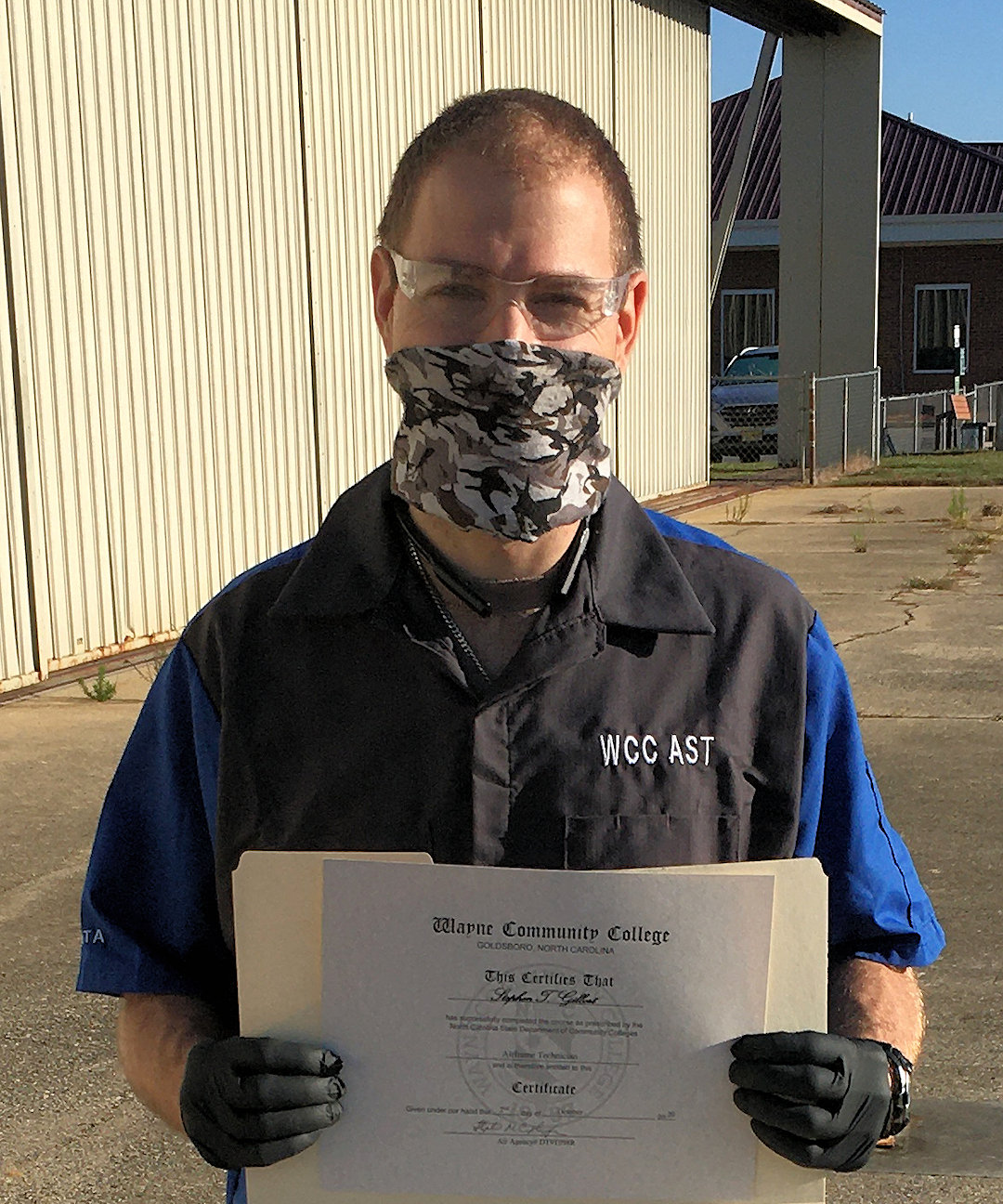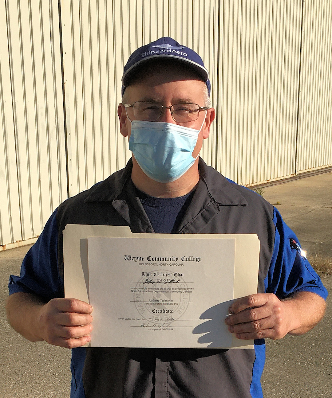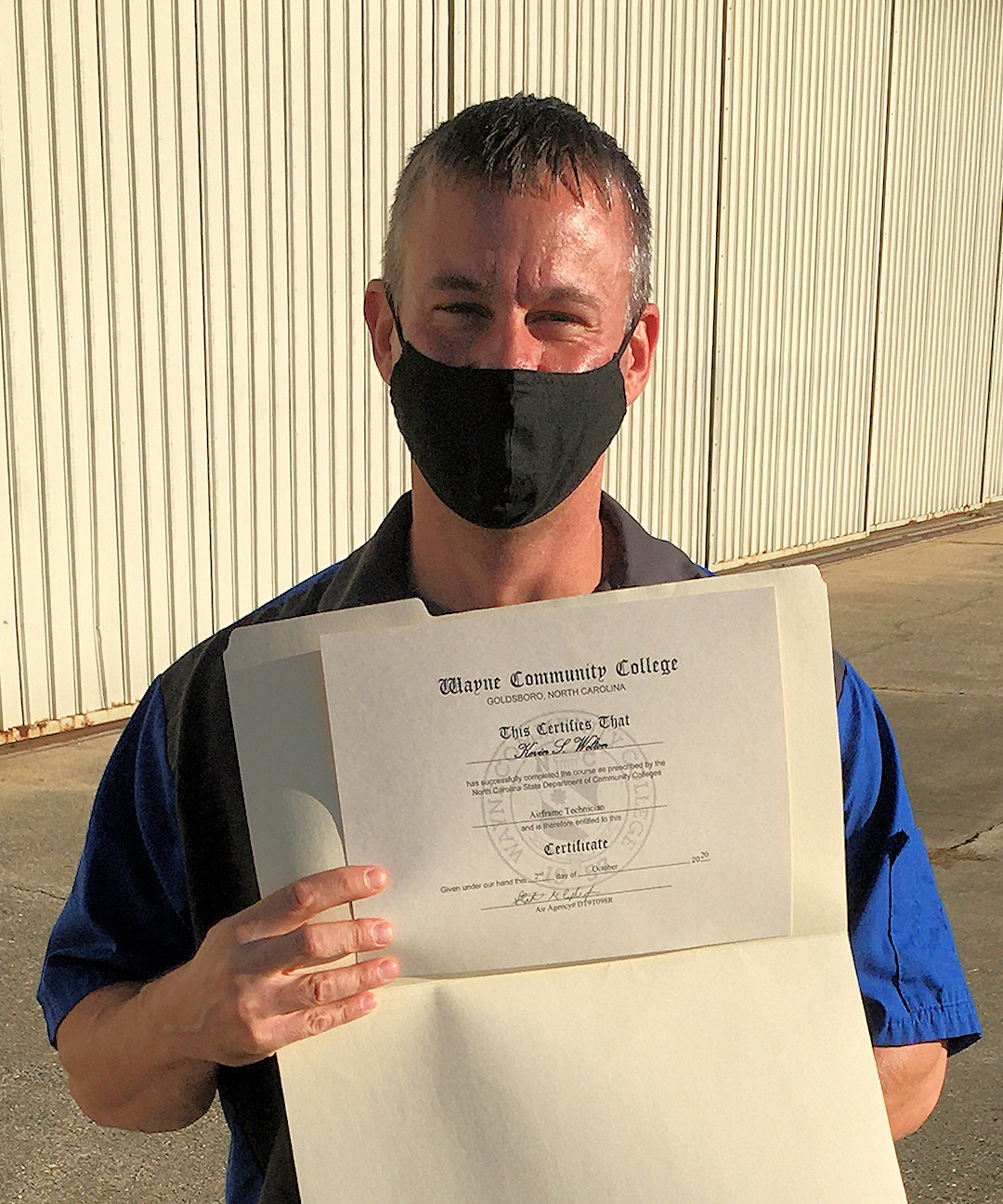“Once the candidate passes both parts of both of those exams, he will be issued a temporary certificate which will immediately certify that candidate as a Mechanic with Airframe rating,” explained Aviation Systems Technology Instructor Mike Crumpler. “The temporary certificate authorizes that individual to exercise the privileges of an Airframe Mechanic while he waits for the permanent certificate to arrive by mail.”