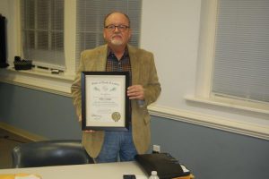 “I had no idea, I thought I was getting a 40-year pin for the fire department,” he recalled. “They said hold on we’ve got something else for you and they pulled out (what) I figured (was) a plaque. I thought they were going to present me with a 40-year plaque.”