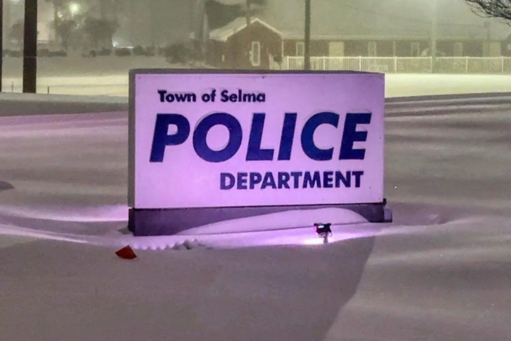 During heavy snowfall, a Selma police officer on routine patrol approached the intersection of Lizzie Street and Sellers Street and noticed what appeared to be an object lying in the roadway. Upon closer examination, the officer determined the object was a woman lying motionless and covered in snow.